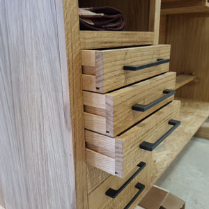 Massief eiken edelsmid werkbank met push to open lades. Afgewerkt met een Skylt 2k voor een natuurlijke look.