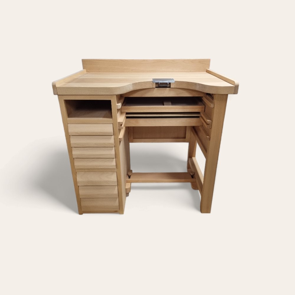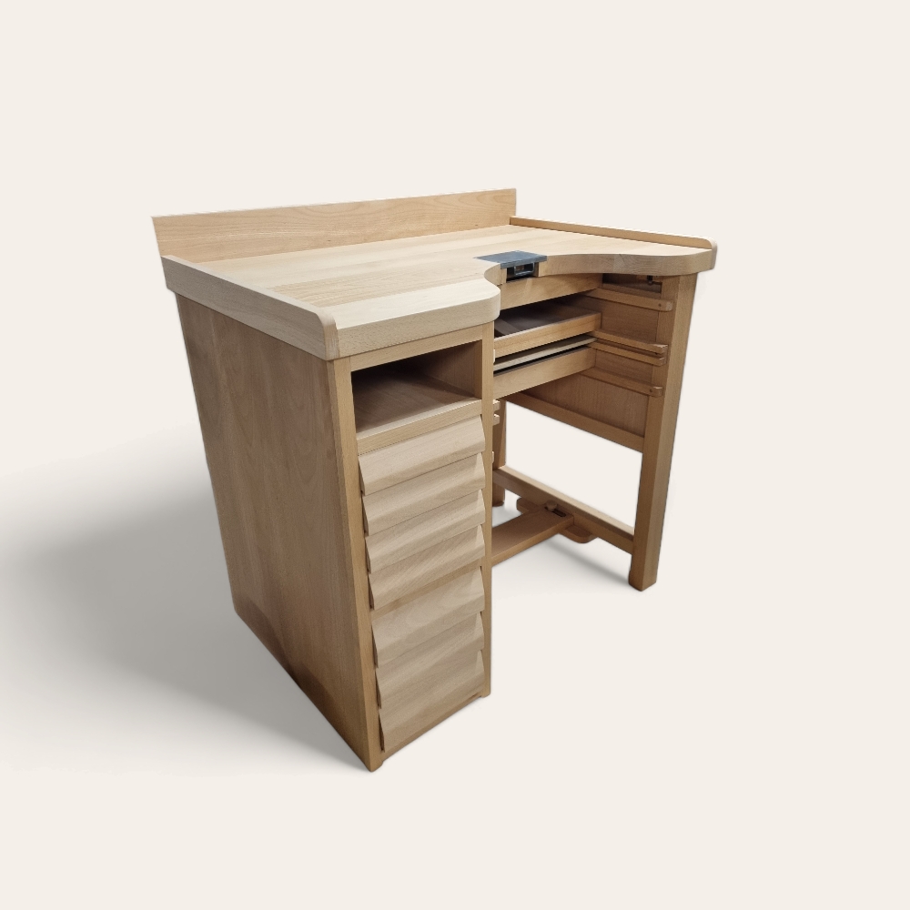 Volledig beuken werkbank voor edelsmid met greep loze lades.